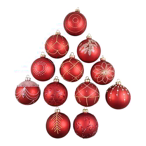 DGA - 12 delar - Set med julkulor - Röd