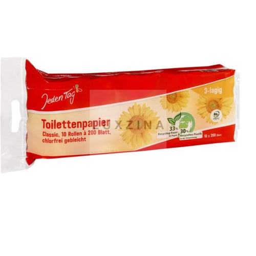 Jeden Tag Toalettpapper 3-lagers toalettpapper som kombinerar kvalitet och ekonomiska fördelar.