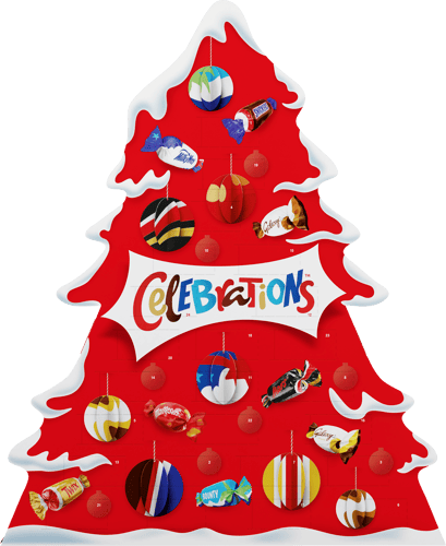 Celebrations julkalender är den perfekta adventskalendern för chokladälskare. Den innehåller 215 g choklad, som innehåller en rad chokladfavoriter från välkända varumärken inom Celebrations-sortimentet. Adventskalendern är perfekt för att räkna ner till jul på ett sött och roligt sätt. Innehåller socker, glukossirap, kakaosmör, jordnötter och vetemjöl. Observera att produkten kan innehålla spår av hasselnötter, mandel och havre.