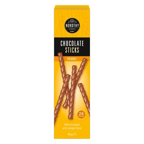 Nordthy Chokladpinnar. Mjölkchoklad med apelsinsmak.